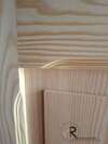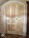 Fabrication et pose d'une porte sur mesure en pin massif. Traverse haute à anse de panier.